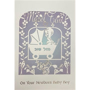 MAZEL TOV On Your Newborn Baby Boy Jewish Art Papercut Greeting Card Blank Made in Israel By AGAM