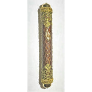 Oriental Mezuzah Leather Golden Lace Filigree Hand made by Eva Mishaan Kosher $50 parchment included