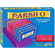PARSHO - A "Rack-o" type game where players rack up cards representing all of the Torah parshas in sequence.
