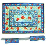 Pomegranates Hand painted Wooden Challah Board / Knife By Yair Emanuel