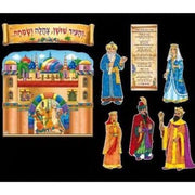 8 piece set has all the main Purim characters (Esther, Mordechai, Achashverosh & Haman), the royal palace and more.