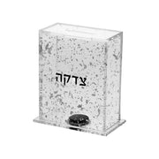 Silver Flakes Lucite Contemporary Design Tzedaka Charity Box