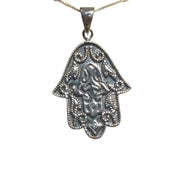 925 Sterling Silver Antique Hamsa Pendant 1.3" Necklace Made in Israel