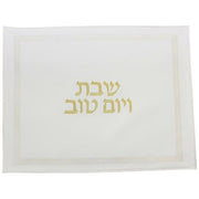 The words 'Shabbat and Yom Tov' embroidered on the cover in Hebrew