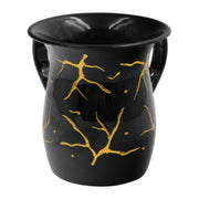 Stainless Steel Netilat Yadaim Washing Cup Golden Corals on Black Design 5.5"H and Bowl 12"D