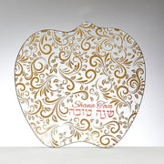Rosh Hashanah Glass Apple Plate Gold & Red Design