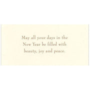Folded ivory card (fold at left) featuring an swirled pomegranate from the artist Ilana Landau. Front of the card is only as shown. Inside is your sentiment and signature lines are printed. Use the sentiment as shown or choose a standard sentiment for free. You can also specify a custom sentiment for an additional fee. Hebrew "L'Shana Tova" can be added above your English sentiment for free as well, if desired. Cards are printed on recycled paper.